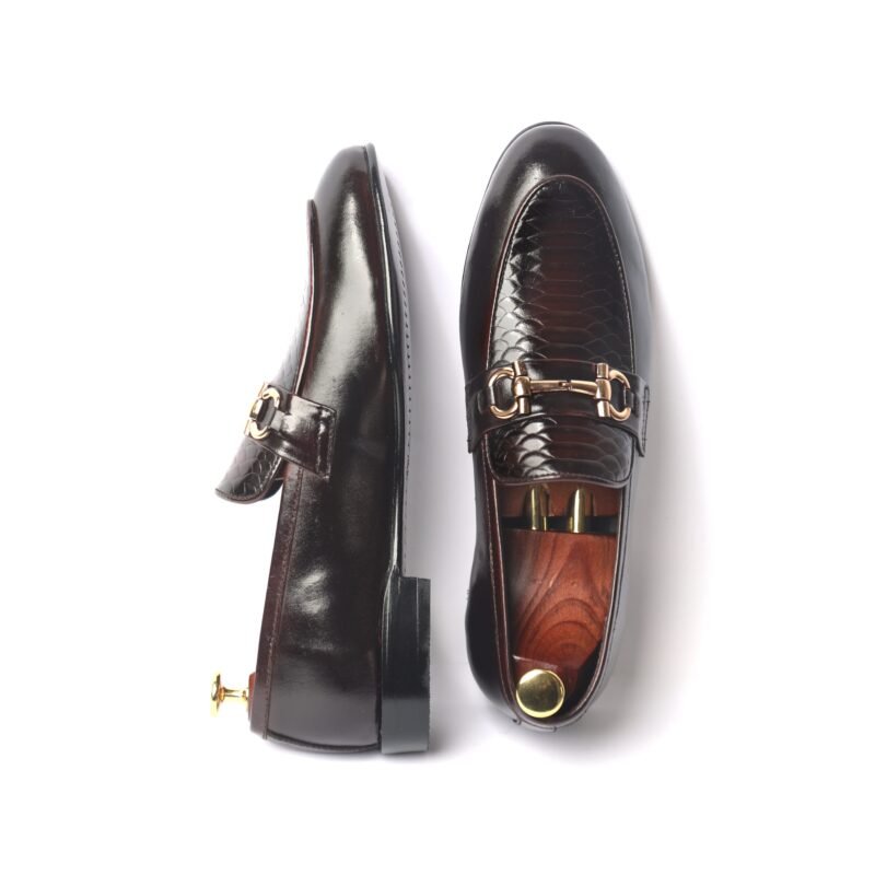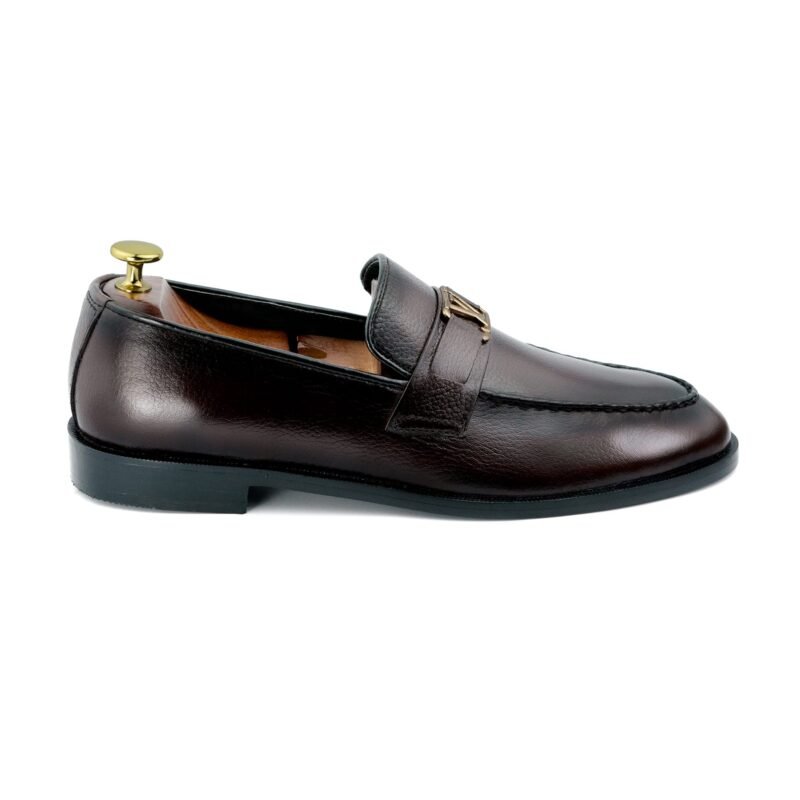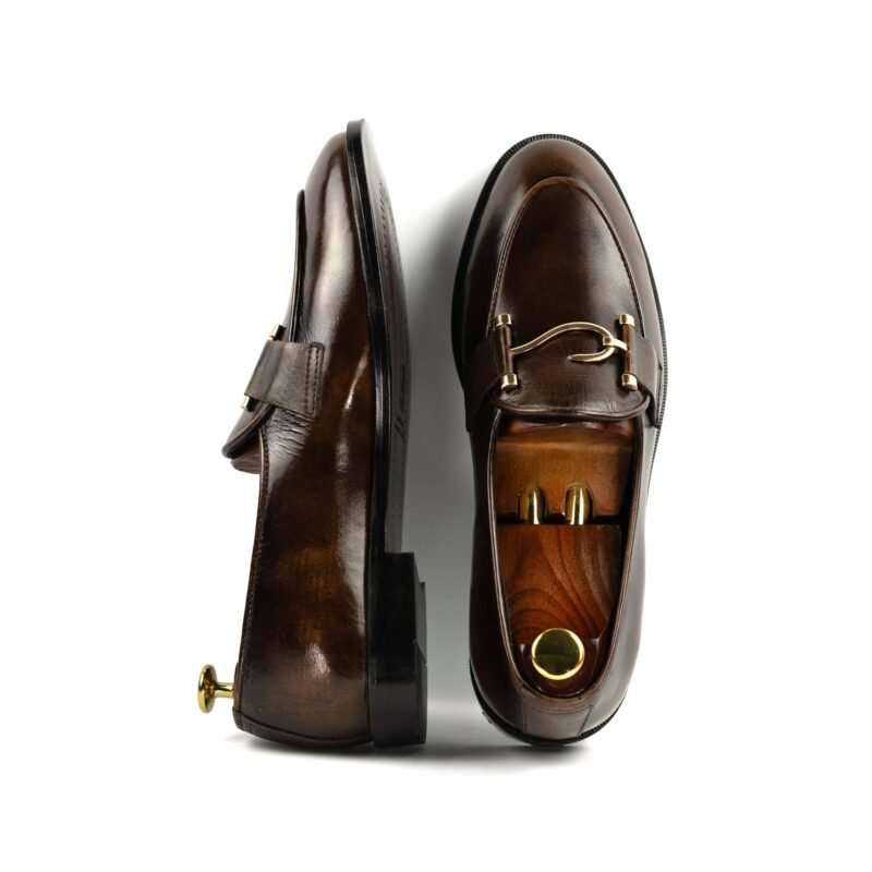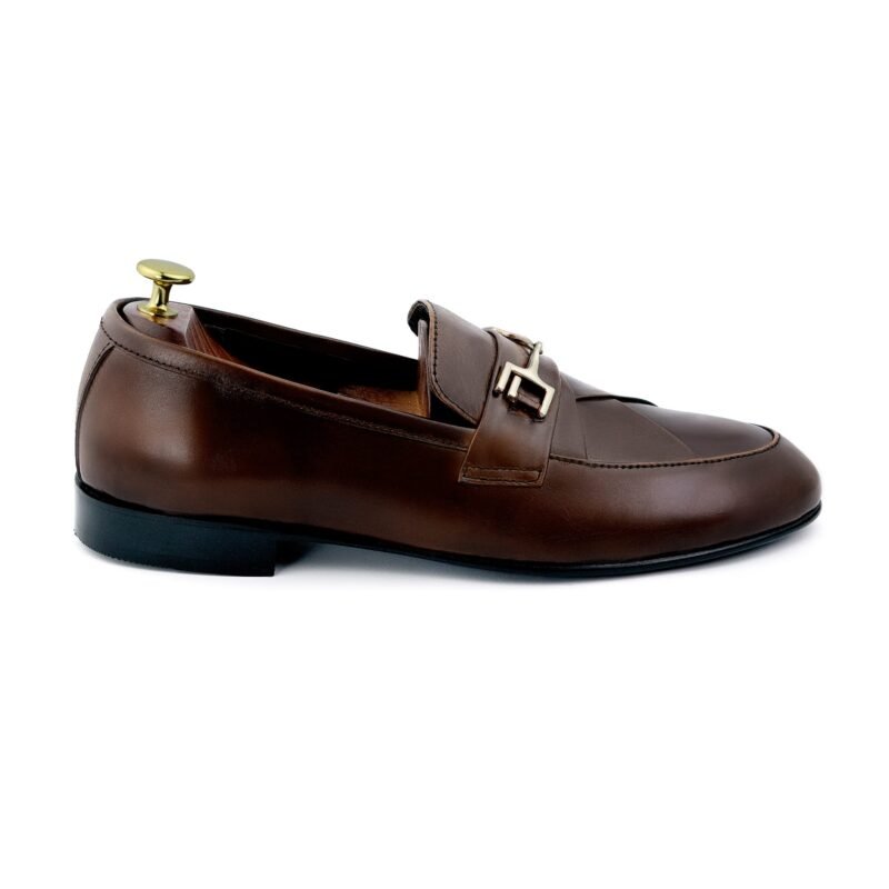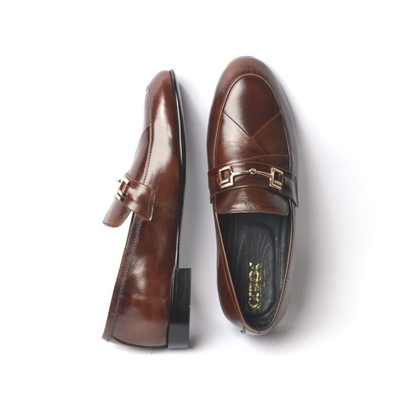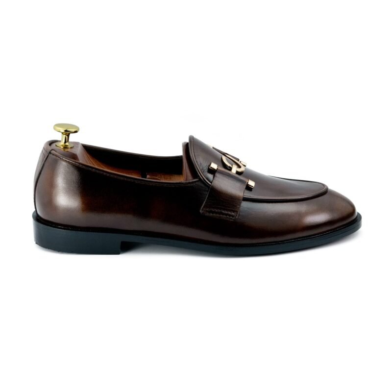 OXBOK Men Gold Hook Buckle Brown Loafer