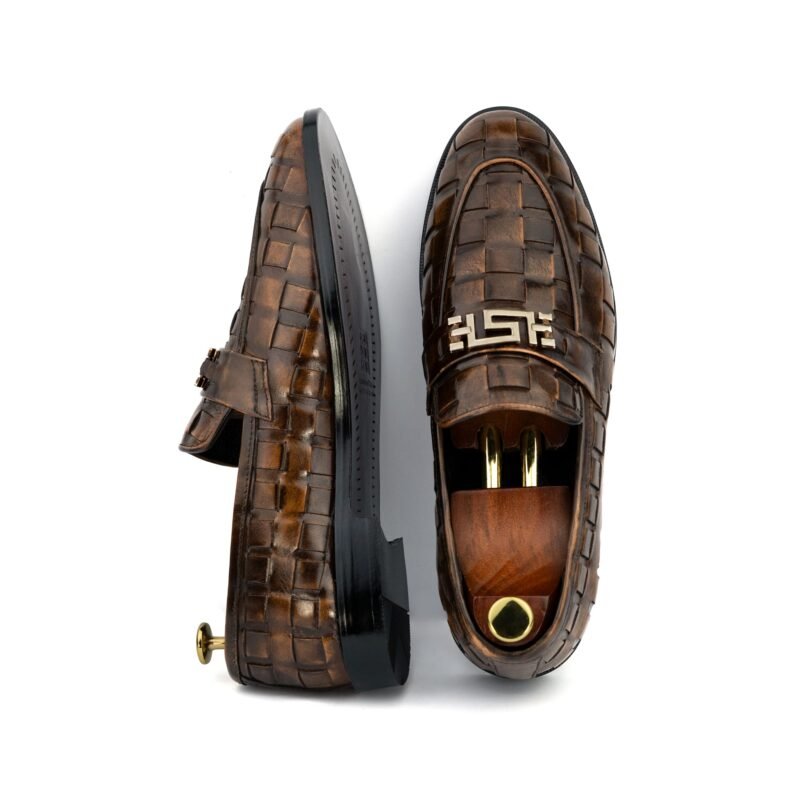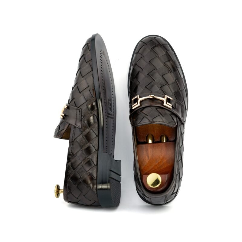 OXBOK Men Hand Woven Dark Brown Leather Loafer