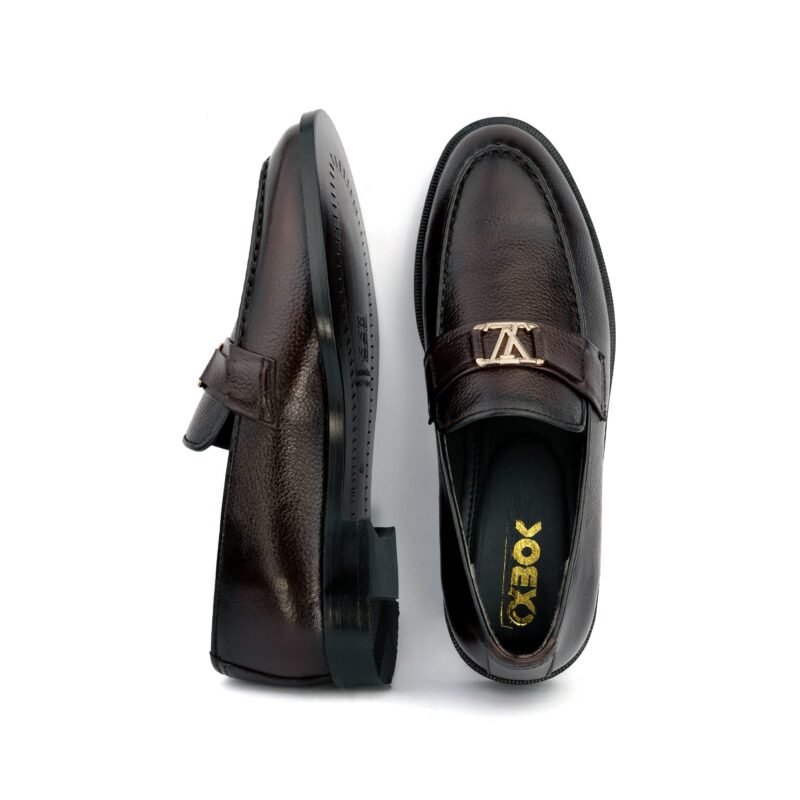 OXBOK Men Classic Buckle Brown Leather Loafer