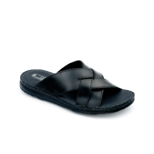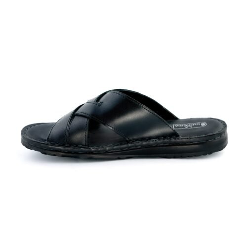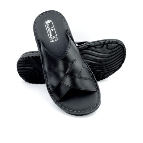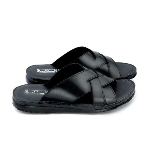 LA CUOIERIA Men Cross Strap Black Leather Slipper